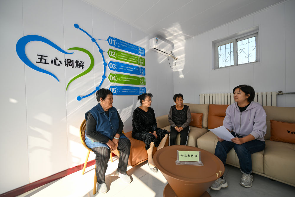 正在天津市宁河区芦台街道金华社区,社区党总支副吴蕊(左一)就社区设备安拆问题为社区居平易近进行解答(2024年10月11日摄)。金华社区积极践行新时代“枫桥经验”,将原社区居委会闲置用地提拔成为联络群众的下层分析管理阵地——“解铃小院”。记者 孙凡越 摄。